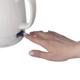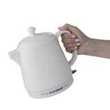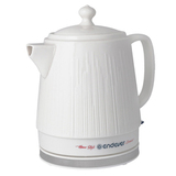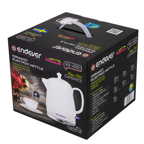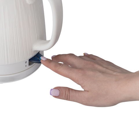 Материал - эко-керамика. Поэтому вода не имеет привкуса, в отличие от пластиковых чайников. Ещё одно достоинство такого чайника - он долго держит тепло и не остывает, что позволяет экономить электроэнергию. Также керамический чайник закипает намного тише, чем пластиковые и металлические.
